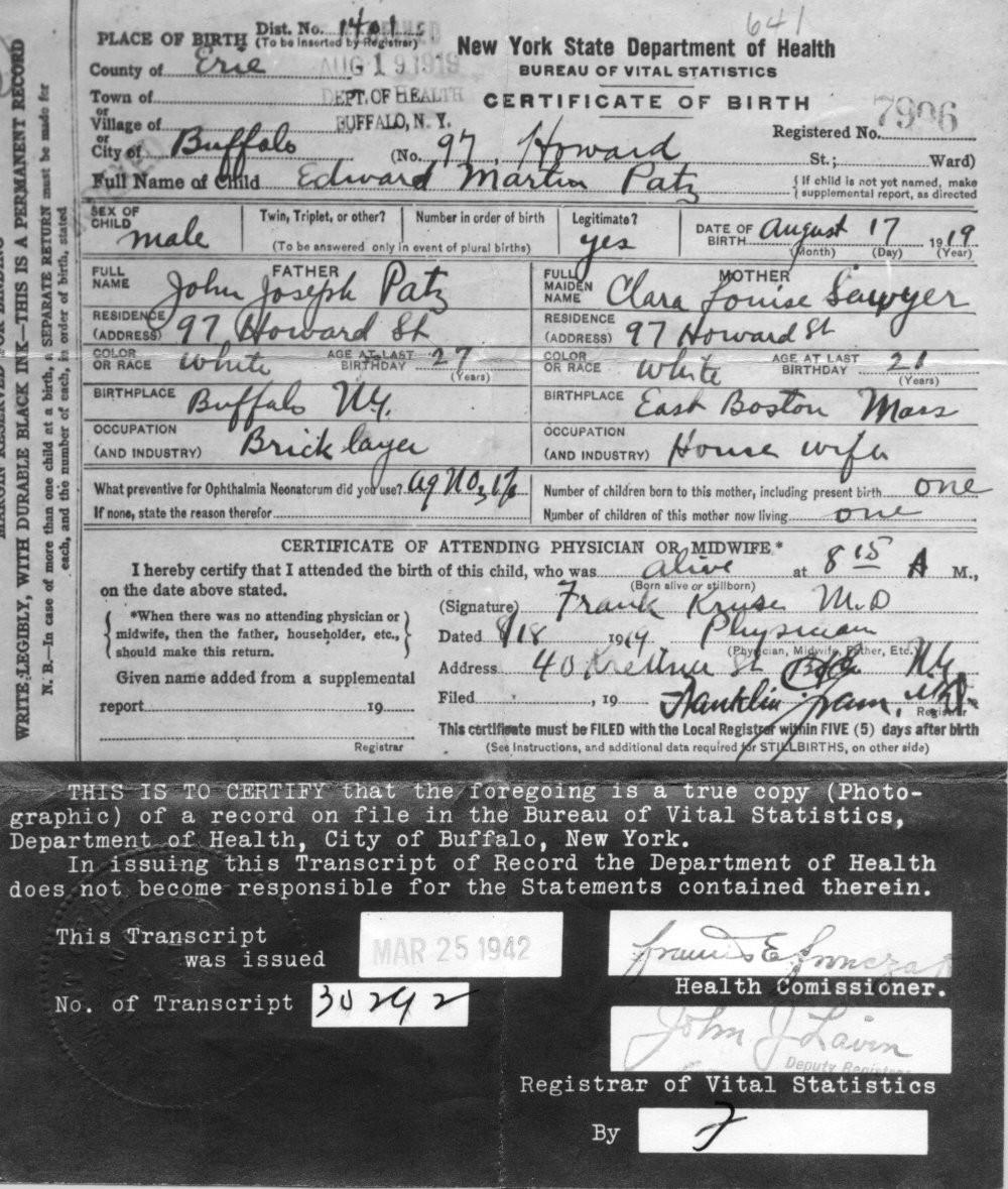 | Parents of Edward Martin Patz, Sr.: |