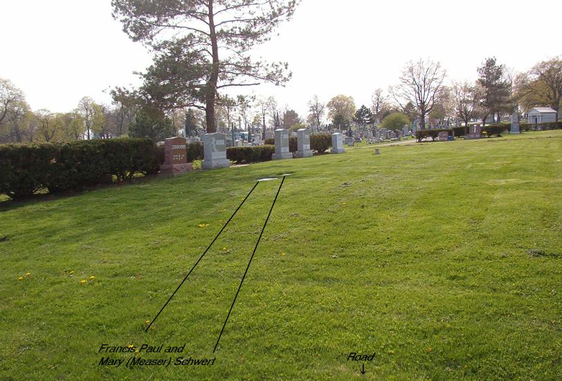 General location of the gravesites of Francis Paul Schwert and Mary Frances (née Measer) Schwert, Lot 114, Section 20, United German & French Cemetery (Pine Hill), Cheektowaga, NY. A map to locate the gravesite is available here.