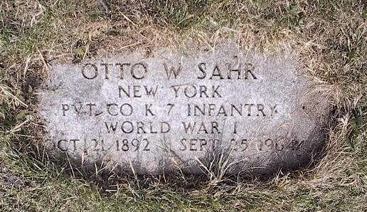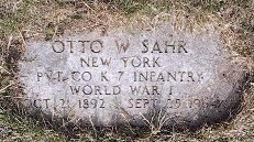Grave of Otto W. Sahr, Lot 0, Sec. 30, Buffalo Cemetery (Pine Hill), Cheektowaga, NY.